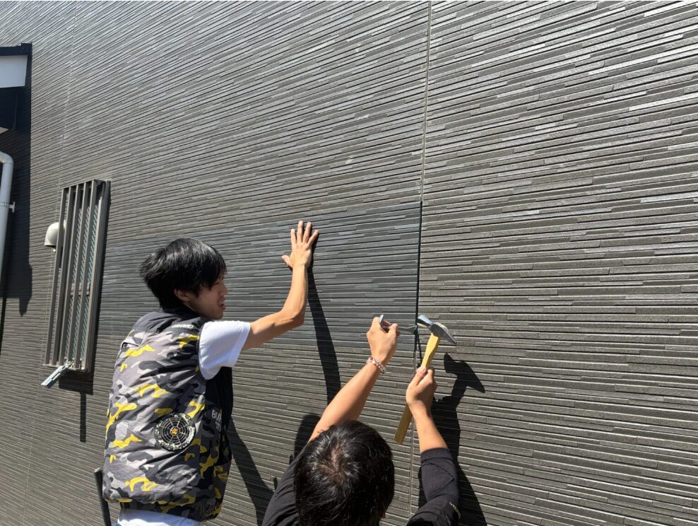 ホーム リフォーム関連 サイディングの張り替え サイディングの張り替え2025-10-02 とある戸建てのサイディング(外壁)の部分張り替えを行ってきました。 気を抜根する際に木が当たり外壁が割れてしまったとのご相談を受け、飛んで修復して行きました。 弊社は内装工事はもちろん、外壁の工事も綺麗に納めます! お困りの事がございましたら、お気軽にご相談ください! 縦に亀裂が入ってしまっています。 では、張り替えていきましょう。 部分的に剥がします。 新しい外壁材をはめていきます。 完成!